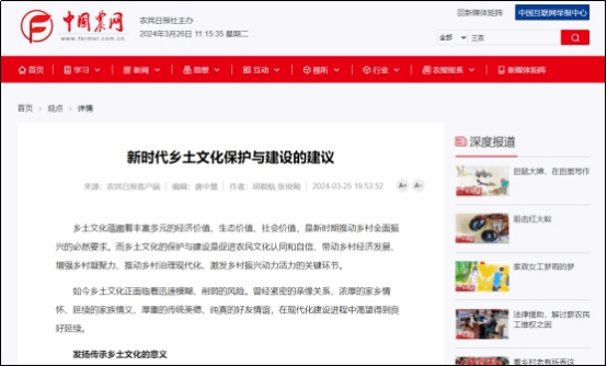 张俊飚发表理论文章理论文章《新时代乡土文化保护与建设的建议》