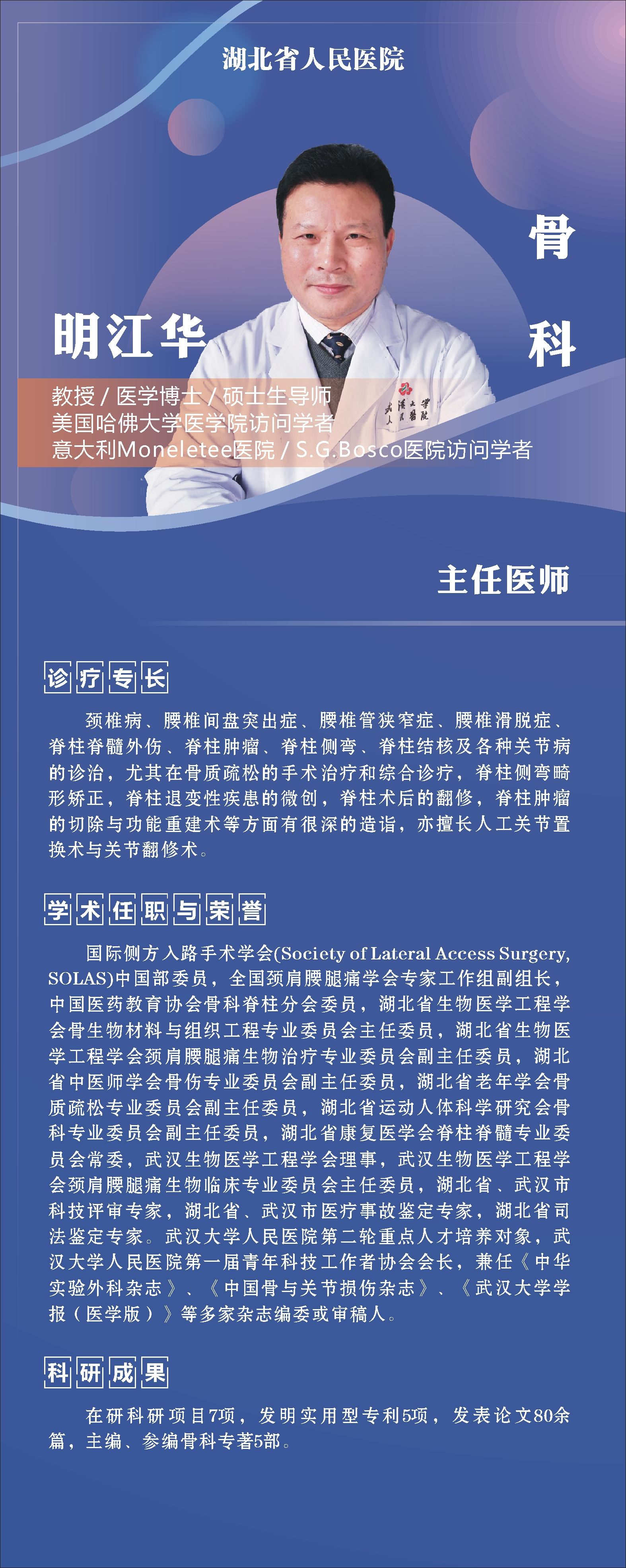 11月24日——11月28日,湖北工业大学医院将邀请湖北省人民医院知名专家——骨科明江华主任、心内科周晓亚主任两位专家教授前来校医院坐诊(具体坐诊信息见下)。请广大师生、周边居民持续关注南湖门诊专家坐诊信息,如有: