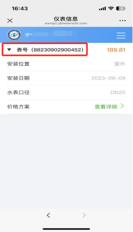 7.点击首页仪表信息可以查看水表相关信息(如价格方案:水价)