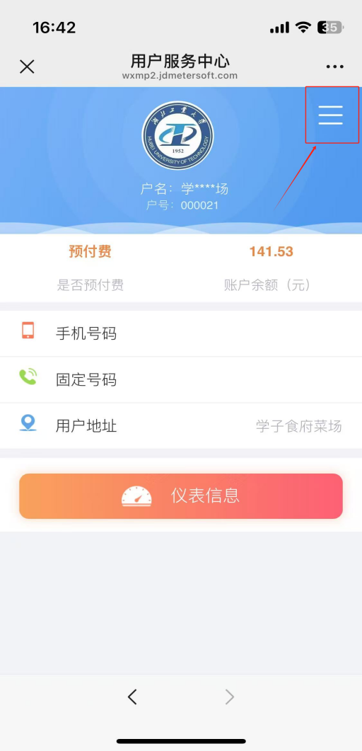 温馨提示:缴费入口开放后水表进入预付费状态,用户通过微信搜索“湖北工业大学缴费平台”(服务号)进入缴费页面,查看近期用水量以及账户余额。请各用户及时充值,因换表后已使用的水量将自动抵扣,建议首次自助缴费充值适量充足,为您用水方便请不要待水表余额为零再充值,避免停水给您生活带来不便。详见附件:手机缴费操作流程