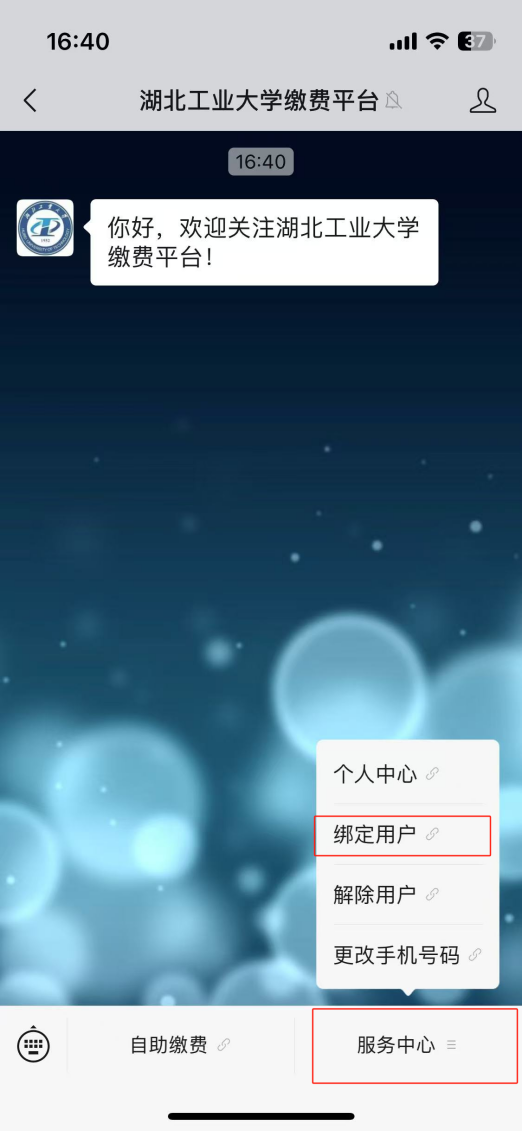 1. 移动支付操作流程缴费的用户需先微信搜索关注“湖北工业大学缴费平台”(服务号)