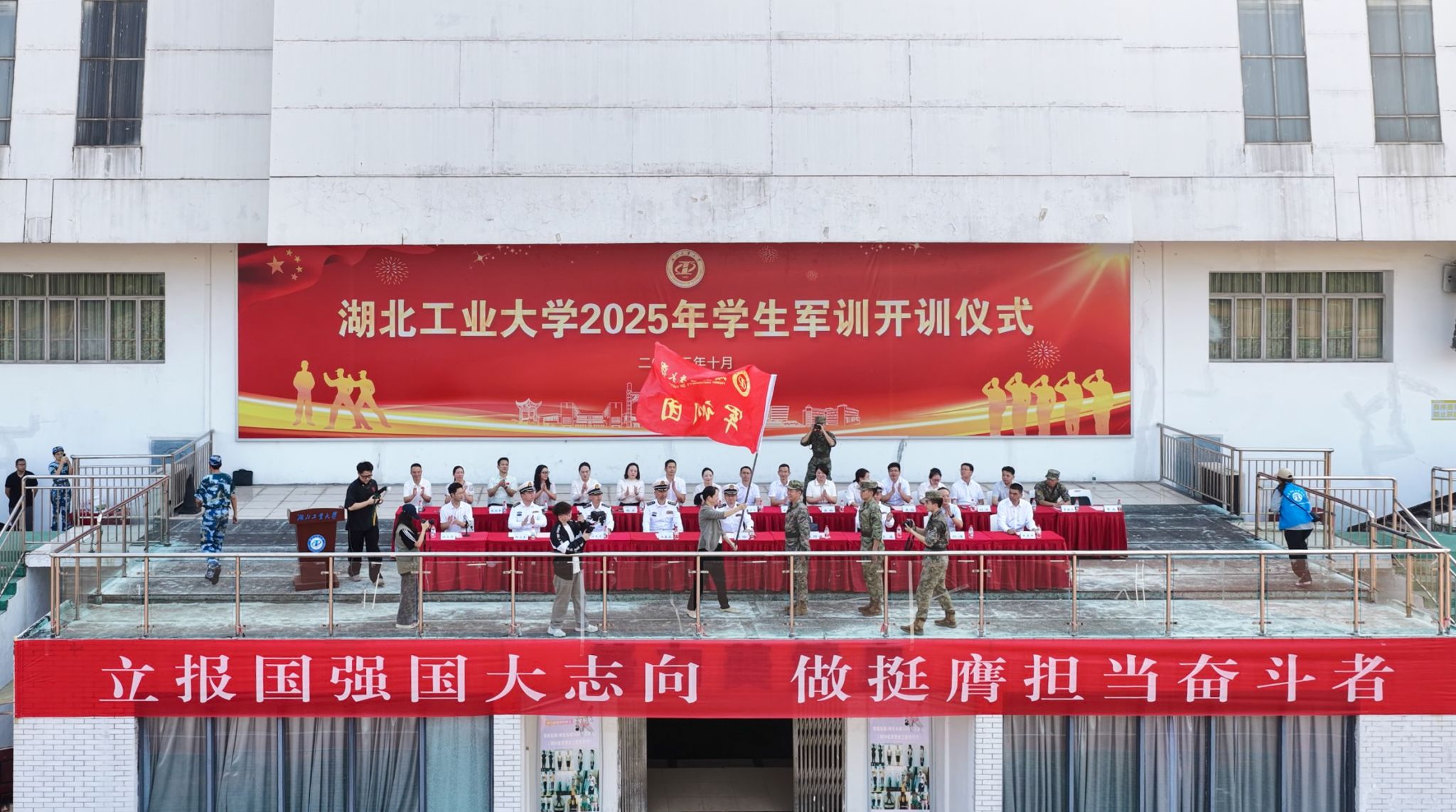 10月9日,湖北工业大学2025年学生军训开训仪式在学校中区操场隆重举行。校党委副书记、副校长桂丽,海军工程大学动力工程学院院长陈玲大校,及学工部、教务处、工程技术学院负责同志、各学院副书记、军训团成员、参训学员共同出席仪式。仪式由学生工作部、武装部部长任卫华主持。