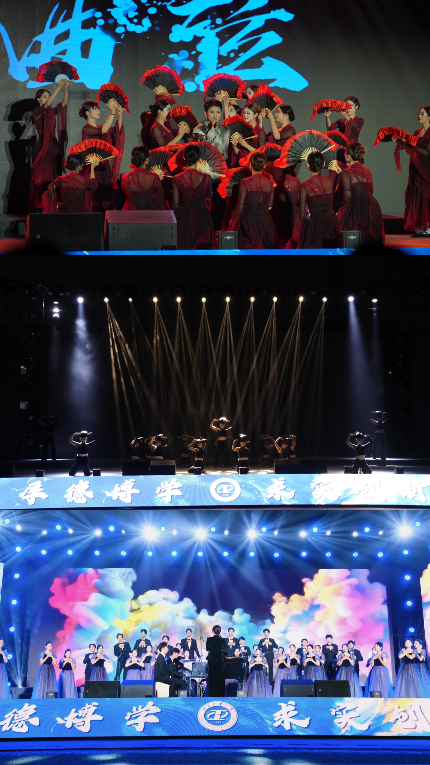 “南湖水,长江波,日夜流淌我心中的歌···”,晚会最后,全体在场师生饱含赤诚与眷恋齐唱校歌,共同祝愿母校在工业强国的征程上绽放华光。