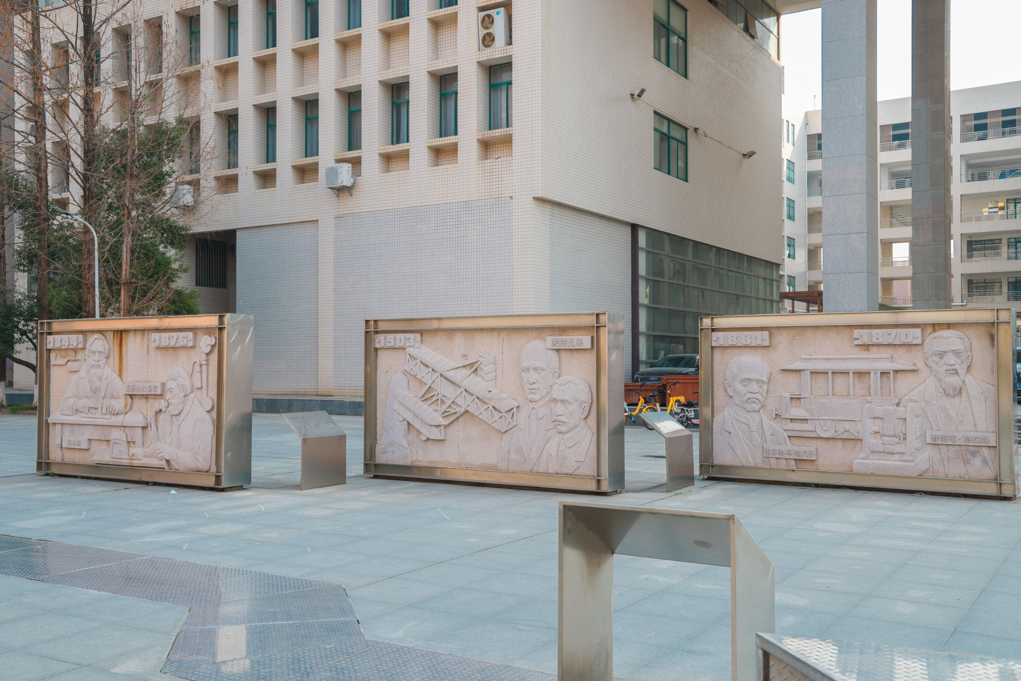 工业文化长廊从2014年10月立项建设,历经四年的研究、规划、设计、建设,于2017年7月整体竣工验收,总投资780余万元,其中多件艺术品为校友捐建。长廊深度融入相邻校园建筑、景观、道路,与参观者形成互动,集艺术性、文化性、教育性于一体,成为展示中外工业文明成果的露天博物馆和引领学生素质发展的教育基地。