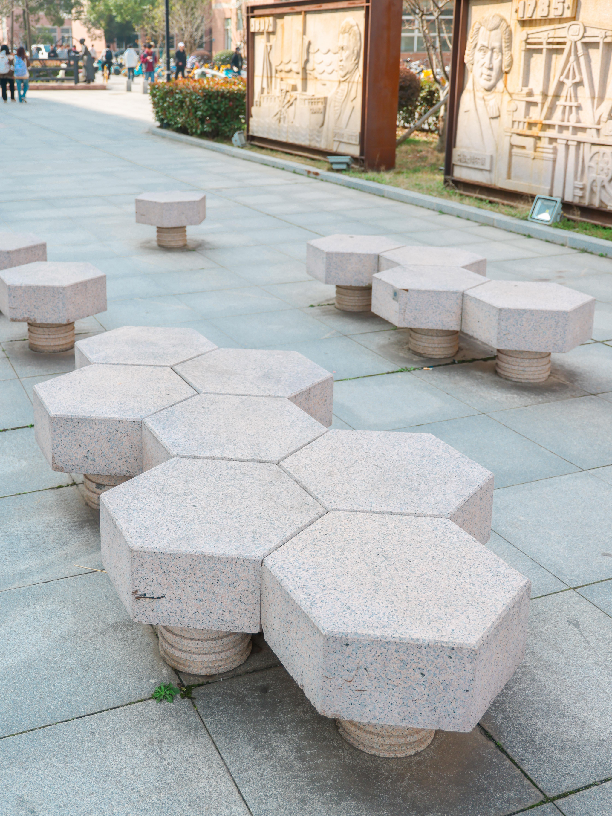 螺丝型座椅雕像,高0.4米,由花岗石打造而成。