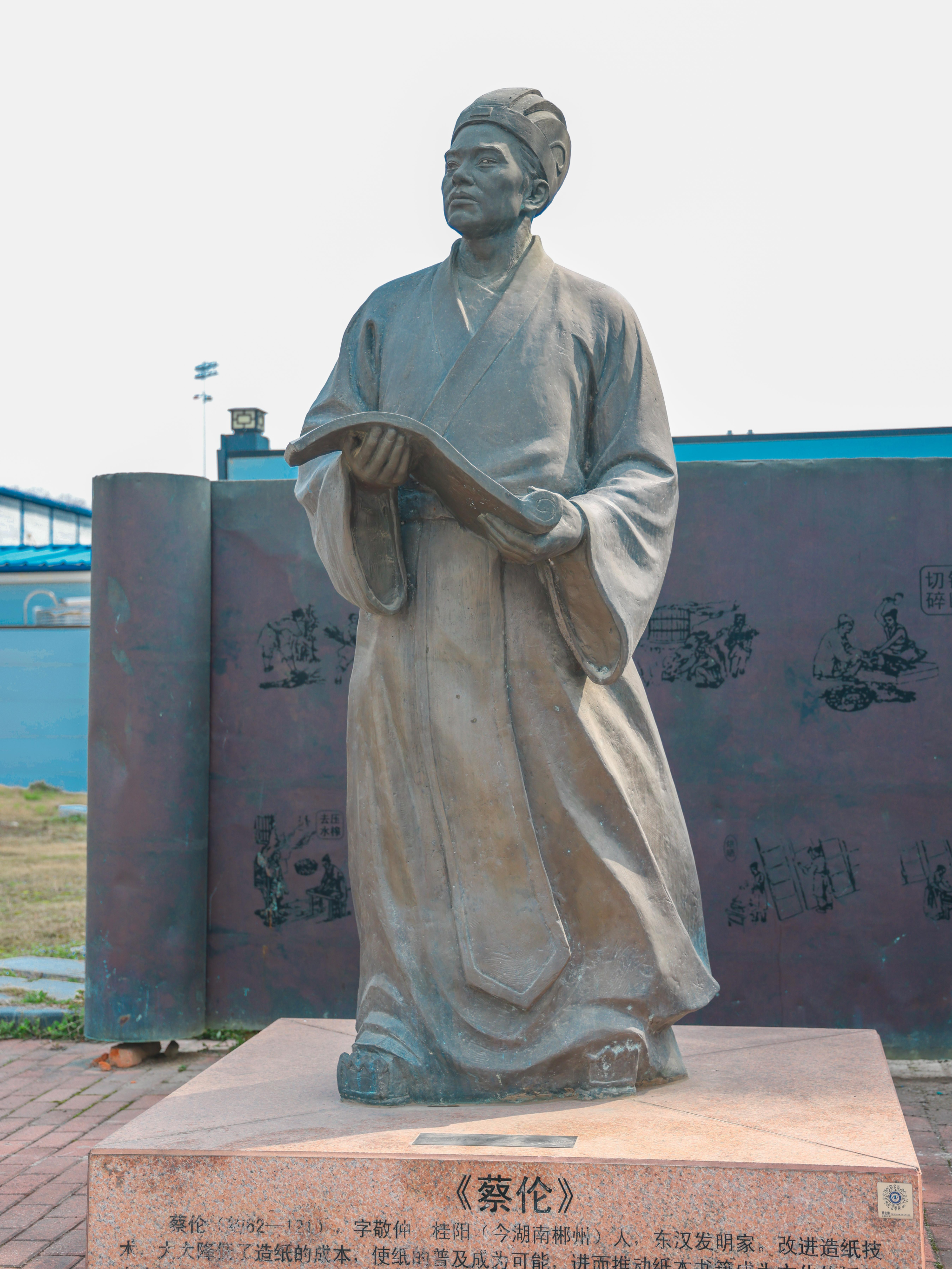 蔡伦雕像,高2.2米,整体采用铸铜工艺,由2mm不锈钢板锻打而成。